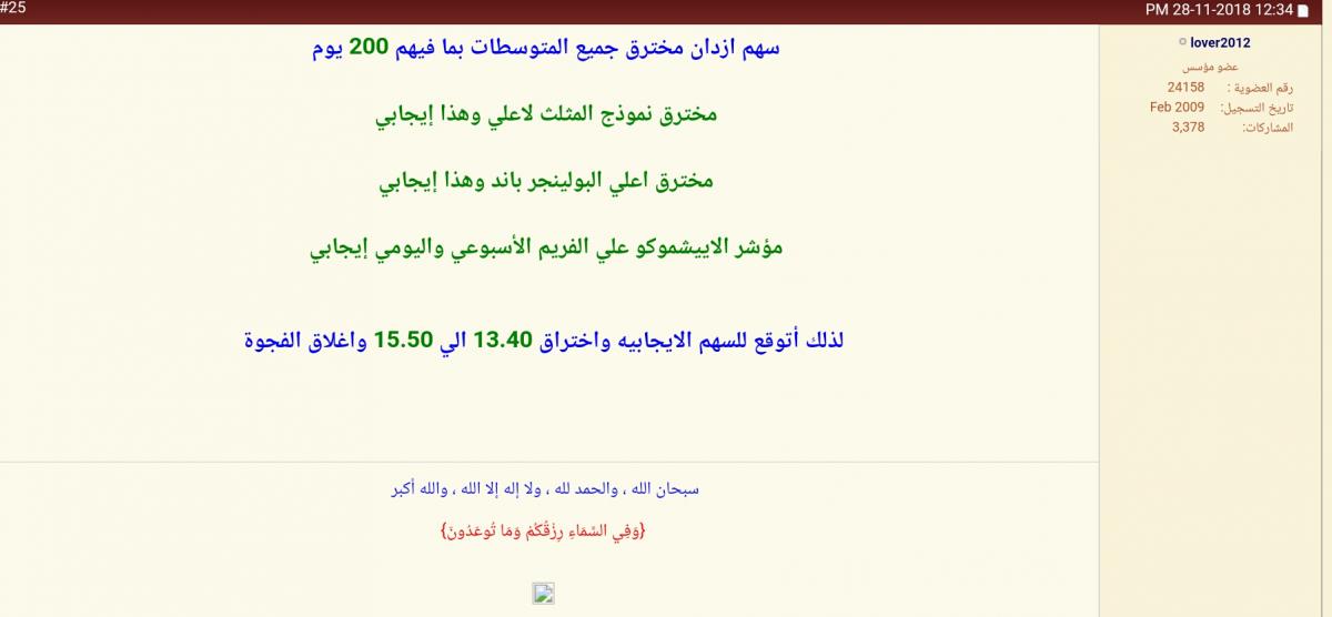 تحليل السهم في احدي جلسات التداول بتاريخ 28 11-2018 عندما كان السعر 12.70 ريال